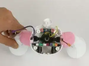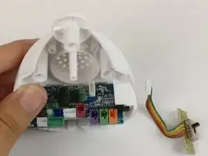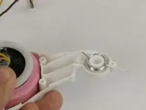 Чтобы заменить выключатель питания/регулировки громкости, удалите два винта Phillips #0, удерживающие выключатель.