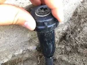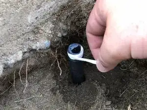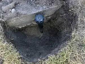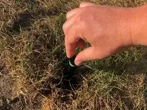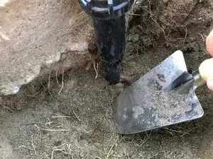 Завершите копку вручную или садовой лопаткой так, чтобы распылитель был полностью виден и очищен от земли и мусора.