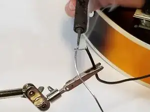 В этом руководстве показано, как припаять новый разъем выхода на бас-гитаре Hofner. Для этого понадобится паяльник. Перед началом работы рекомендуется ознакомиться с руководством по основам пайки, так как в данном руководстве процедура пайки описана не полностью.