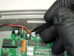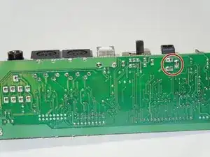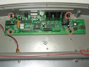 Чтобы отделить заднюю панель, отсоедините все пять кабелей, подключенных к материнской плате, но не идущих от задней панели: сборку клавиш, плату ЖК-дисплея, цепь настройки ротора и цепи питча и модулятора. Для снятия этих кабелей инструменты не требуются — приложите упорное вверх направленное усилие, чтобы вынуть их.