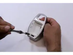 Удалите два винта Phillips #1 размером 9 мм с задней панели устройства.