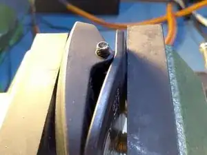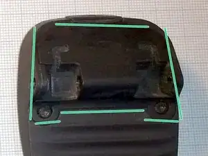 Блок шарнира, выделенный зелёным (с винтами, удалёнными на шаге 3), ощущается свободным, но всё ещё удерживается двумя зажимами.