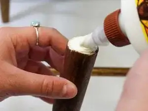 Нанесите морилку на шкант, чтобы соответствовать цвету стула.