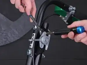 Используйте крестовую отвертку №2, чтобы выкрутить винт, фиксирующий нижний конец троса дроссельной заслонки.