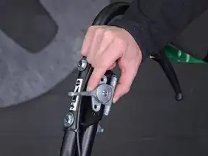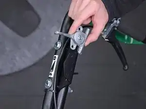 Сдвиньте регулятор дросселя вперёд, чтобы открыть зубчатую рейку, содержащую верхний конец троса дроссельной заслонки.