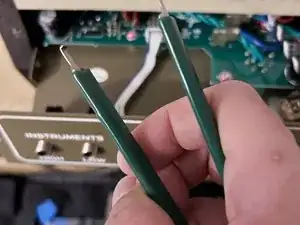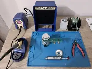Теперь заменим сломанный регулятор громкости. Для этого нам понадобятся паяльник, кусачки вровень и паяльный насос для удаления припоя.