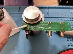 Удалите остатки флюса изопропиловым спиртом и ватной палочкой.