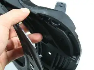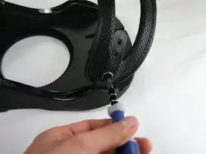С помощью крестовой отвертки #2 Phillips отверните винт с потайной головкой M4 x 10 мм, удерживающий носовой ремень вместе с его разъёмом.