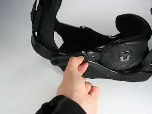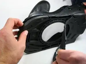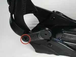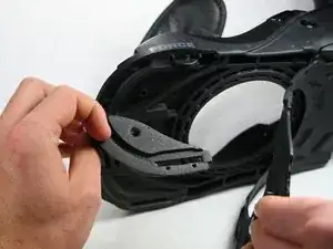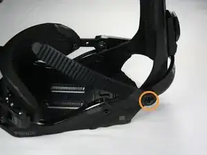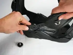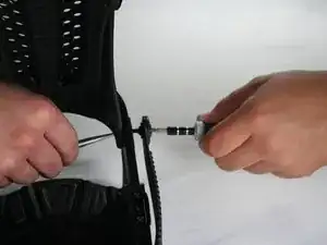 Отведите ремни и пластину хайбека в сторону, чтобы получить свободный доступ к винту подошвы.
