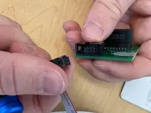 Осторожно отсоедините разъём от платы, полностью освободив правую сторону пластикового корпуса.