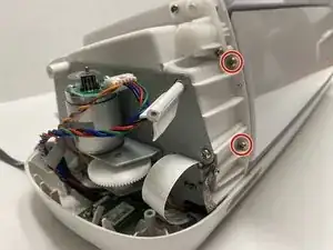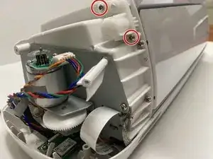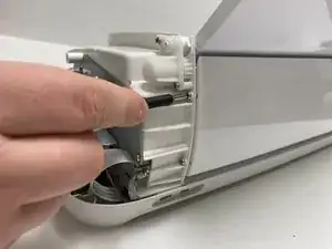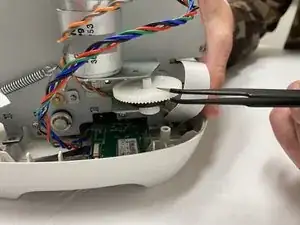 С левой стороны Cricut аккуратно потяните пластиковую шестерню, чтобы снять корпус ремня.