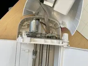 Осторожно откиньте металлическую внутреннюю часть вместе со всем содержимым назад, обнажив нижний пластмассовый корпус Cricut.