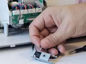 С помощью отвёртки Phillips #1 удалите по одному винту 10 мм с обеих сторон машины. Это освободит провода, прикреплённые винтами к бокам устройства.