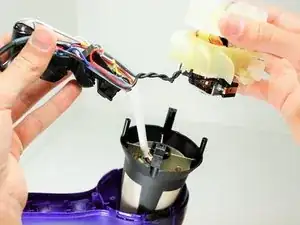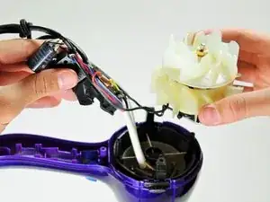 Потяните за заднюю часть мотора вентилятора, чтобы осторожно вывести мотор из фена.