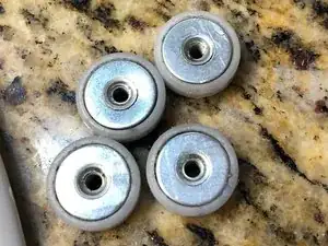 Чтобы установить новые ролики, возьмите крестовую отвертку PH2 и прикрутите ролики обратно к креплению винтами 7 мм.