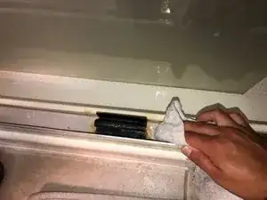 Также очистите направляющую, чтобы дверь лучше скользила.
