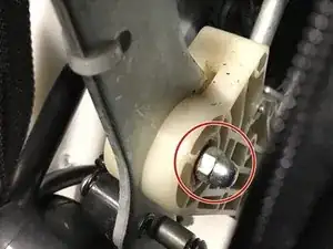 Снимите гайку с помощью ключа. Должна быть небольшая шайба, но она обычно застревает внутри — она выпадет на следующем шаге.