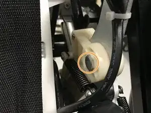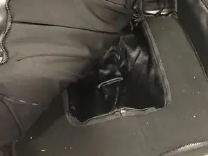 Последний шаг для полного снятия задней накладки — отключить кабель подогрева спинки. Он находится внизу справа на задней стороне накладки.