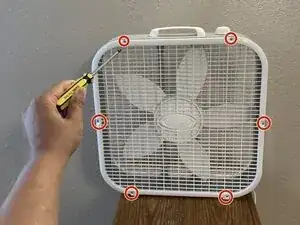 Переверните вентилятор, чтобы получить доступ к задней части рамы.