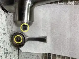 Установите ручку обратно на шпиндель смесителя.