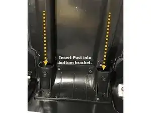 Вставьте новую ручку в сумку. Оба штыря ручки должны надёжно войти в нижний кронштейн ручки.