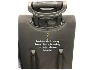 Отожмите ткань сумки внутрь, от пластикового кожуха ручки, чтобы отделить его от корпуса сумки.