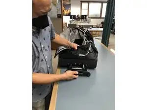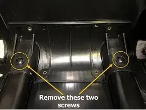 Когда новая ручка на месте, вернитесь внутрь сумки и установите винты в нижний кронштейн ручки.