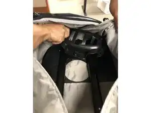 Как только внешний пластиковый узел ручки освободится от сумки, продолжайте тянуть ручку прямо наружу, чтобы полностью извлечь её из сумки.