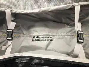 Отстегните пряжки компрессионных ремней для облегчения доступа в основное отделение.