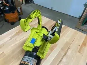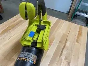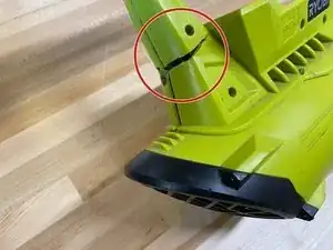 Некоторые сильные нагрузки и случайное падение привели к трещине на ручке этого воздуходува в месте соединения с корпусом. Этот дефект можно легко исправить.