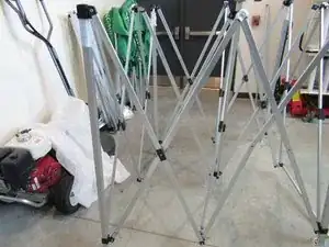В данном руководстве будет показано, как удалить и заменить сломанную или согнутую руку шатра с прямыми ножками. Существует 16 отдельных рук, благодаря которым шатер может полностью раскрываться. Полезными навыками для выполнения данной задачи будут умение правильно использовать крестовую отвертку и ключ. Перед началом ремонта следует снять покрытие шатра для удобного доступа к суставам, а шатер должен стоять и быть раскрытым.