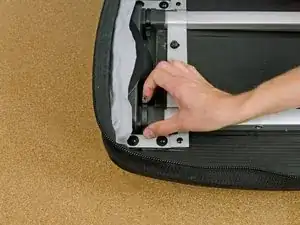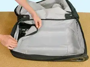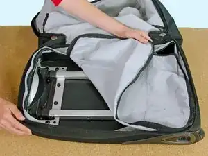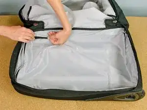 Расстегните молнию в серой подкладке сумки, по мере необходимости открывая подкладку.