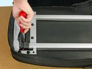 Снимите две чёрные пластиковые фиксирующие скобы с рамы.