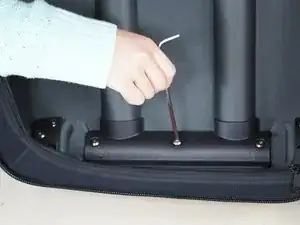 Откройте багаж и расстегните заднюю панель, чтобы обнажить заднюю часть ролика. С помощью шестигранного ключа отверните все 10 винтов вдоль нижней панели и снимите пластиковые накладки