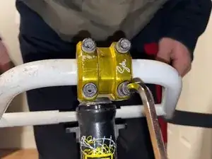 Вставьте обратно четыре болта в рулевую колонку и затяните их наполовину шестигранным ключом 6 мм.