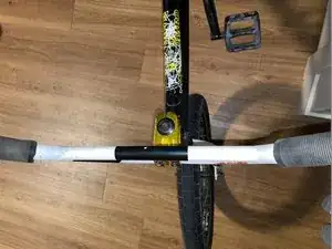 Найдите рулевую колонку велосипеда, соединяющую руль с рулевой трубой вилки.