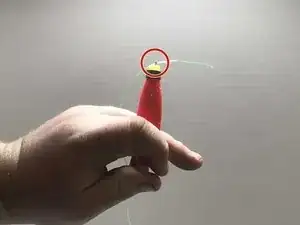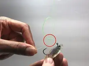 Протяните оставшуюся леску через образовавшееся отверстие рядом с ушком приманки.