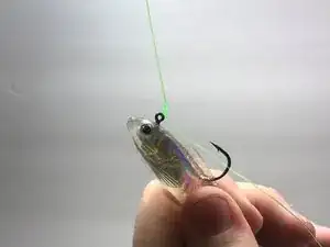 В самом конце лески проденьте леску через ушко приманки на расстоянии около 15 см.