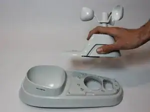 Осторожно поднимите верхнюю часть метеоцентра от основания. При снятии всех винтов это должно легко отойти.