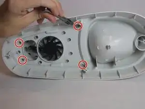 Удалите четыре винта диаметром 0.8 см внутри корпуса у вентилятора, используя биту J1.