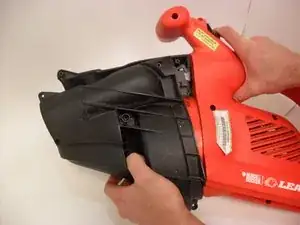 С помощью рук снимите трубку воздуходувки и ракушку.