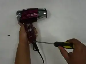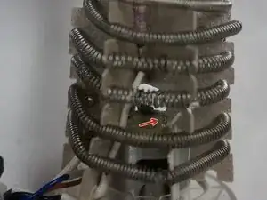 Сборка вентилятора/мотора соединена с сборкой нагревательного элемента в двух точках, которые необходимо распаять. После того, как прикрепленные провода будут извлечены через отверстия, сборка вентилятора/мотора будет свободна от сборки нагревательного элемента. Поздравляем, вы полностью удалили сборку вентилятора/мотора из этого фена!