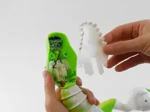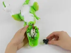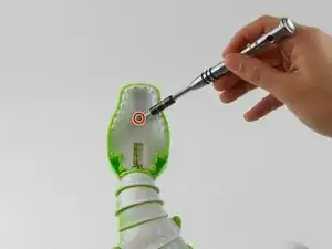 Снимите крышку рта Zoomer Dino Boomer, открутив винт Phillips #0 размером 7.5 мм.
