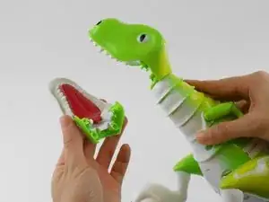 Используйте лопатку, чтобы отжать нижнюю челюсть Zoomer Dino Boomer от его рта.