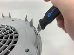 Используйте металлическую лопатку, чтобы аккуратно поддеть между четырьмя белыми защёлками и белым корпусом и освободить внешнюю панель.