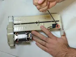 Снимите датчик подачи, выкрутив единственный винт, который его удерживает. Длина винта — 10 мм, диаметр головки — 6 мм.