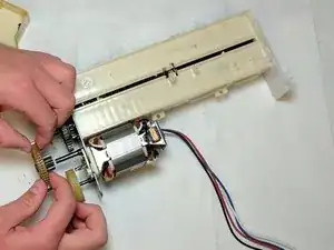 Снимите держатель шестерен, выкрутив два винта, которые его удерживают. Длина винтов — 14 мм, диаметр головки — 5 мм.