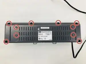 С помощью отвертки Phillips №2 удалите десять винтов длиной 12 мм на нижней части устройства.