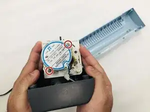 С помощью отвертки Phillips №2 удалите два винта длиной 9 мм с боковой стороны основного компонента, которые фиксируют мотор на месте.