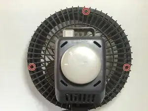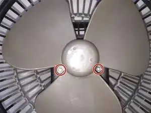 Используя крестовую отвертку Phillips #2, отвинтите 3 винта, расположенные на задней части защитной клетки вентилятора.